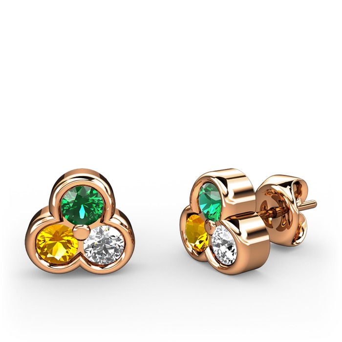 Yeşil kuvars, sitrin ve pırlanta 14 ayar rose altın küpe (0.22 karat)