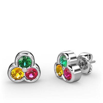 Yeşil kuvars, sitrin ve rodolit garnet 925 ayar gümüş küpe