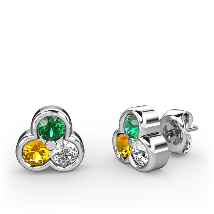 Yeşil kuvars, sitrin ve swarovski 925 ayar gümüş küpe