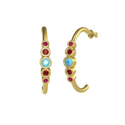Akuamarin, garnet ve rodolit garnet 18 ayar altın küpe