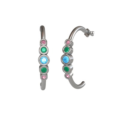 Akuamarin, kök zümrüt ve pembe kuvars 8 ayar beyaz altın küpe