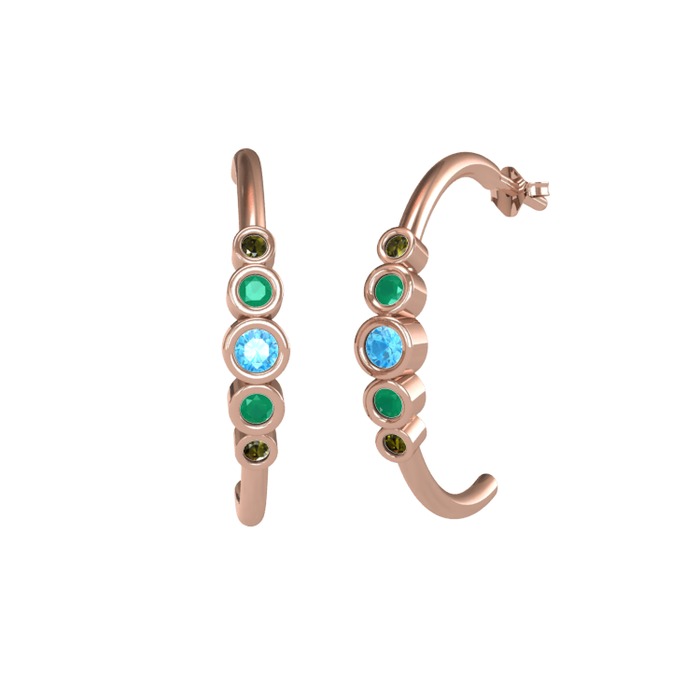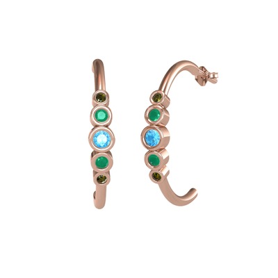 Akuamarin, kök zümrüt ve peridot 925 ayar rose altın kaplama gümüş küpe