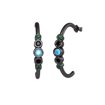 Akuamarin, siyah zirkon ve yeşil kuvars 925 ayar siyah rodyum kaplama gümüş küpe