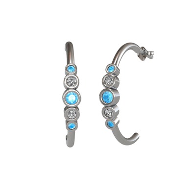 Akuamarin ve swarovski 8 ayar beyaz altın küpe
