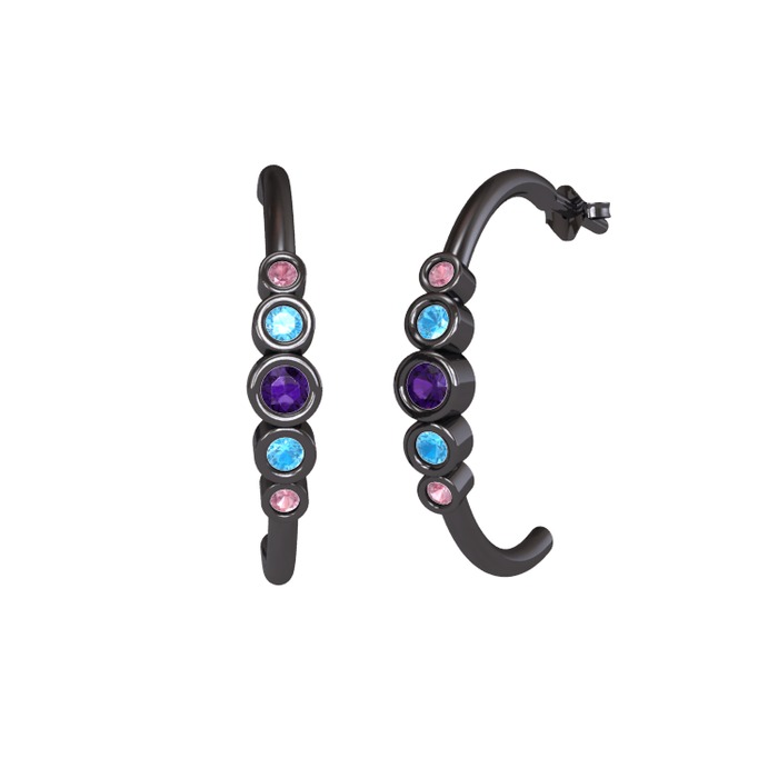 Ametist, akuamarin ve pembe kuvars 925 ayar siyah rodyum kaplama gümüş küpe