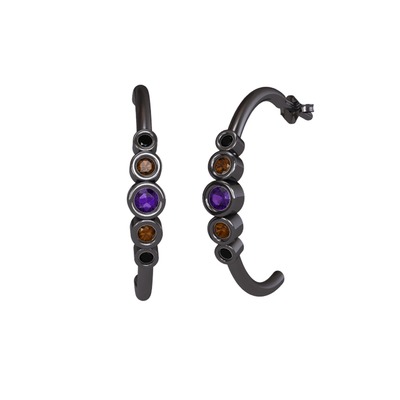 Ametist, dumanlı kuvars ve siyah zirkon 925 ayar siyah rodyum kaplama gümüş küpe