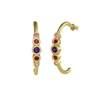 Ametist, garnet ve pembe kuvars 14 ayar altın küpe