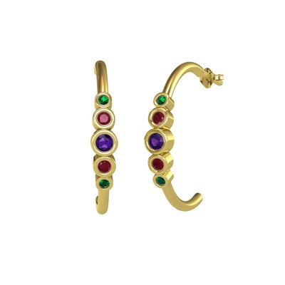 Ametist, kök yakut ve yeşil kuvars 925 ayar altın kaplama gümüş küpe