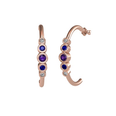 Ametist, lab safir ve beyaz zirkon 14 ayar rose altın küpe