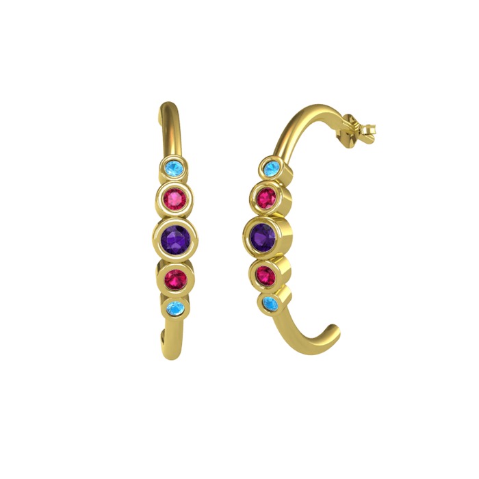 Ametist, rodolit garnet ve akuamarin 8 ayar altın küpe