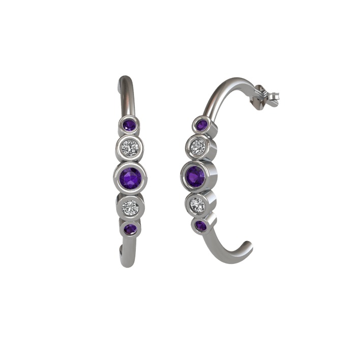 Ametist ve swarovski 18 ayar beyaz altın küpe
