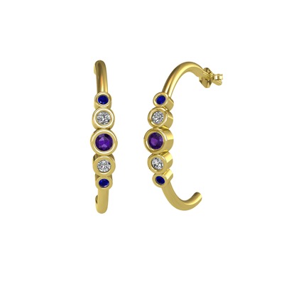 Ametist, swarovski ve lab safir 14 ayar altın küpe