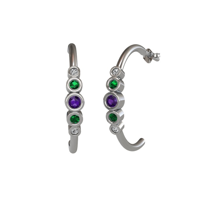 Ametist, yeşil kuvars ve swarovski 14 ayar beyaz altın küpe