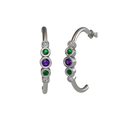 Ametist, yeşil kuvars ve swarovski 8 ayar beyaz altın küpe