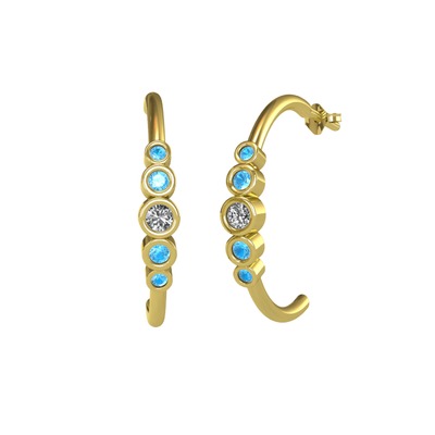 Beyaz zirkon ve akuamarin 18 ayar altın küpe