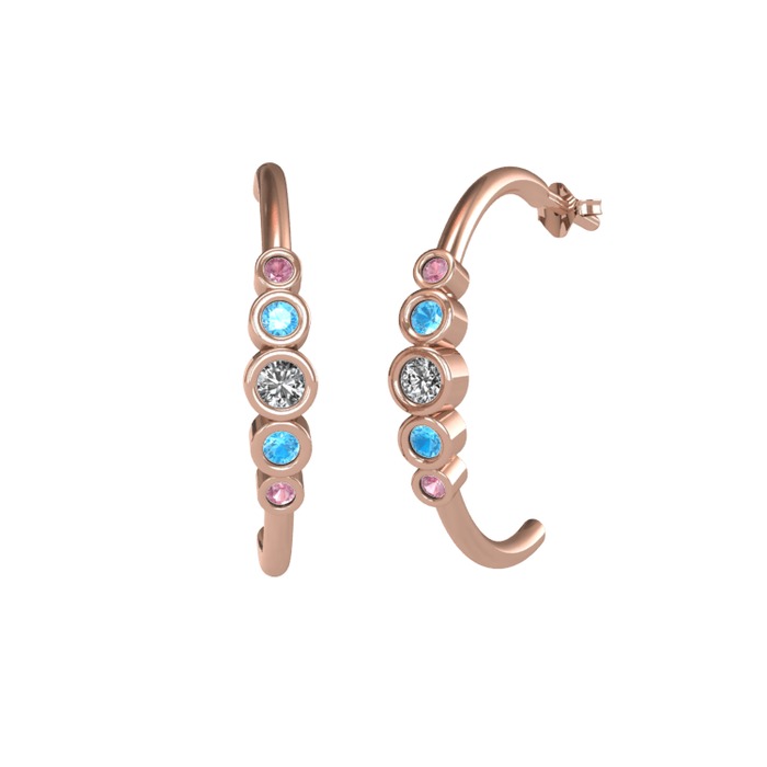 Beyaz zirkon, akuamarin ve pembe kuvars 8 ayar rose altın küpe
