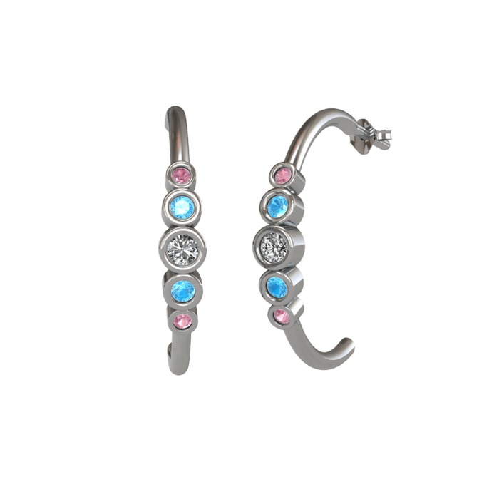 Beyaz zirkon, akuamarin ve pembe kuvars 925 ayar gümüş küpe