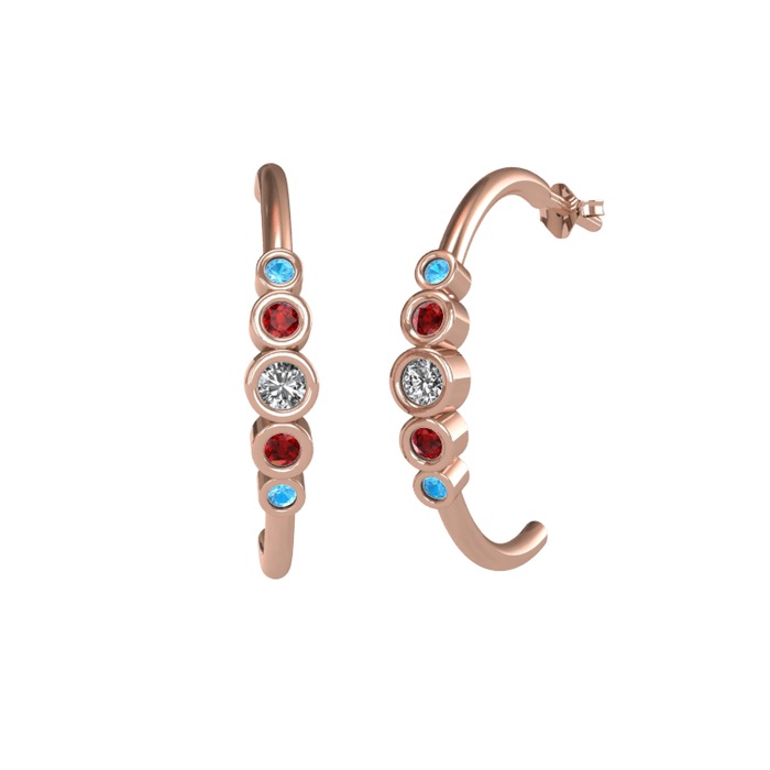 Beyaz zirkon, garnet ve akuamarin 14 ayar rose altın küpe