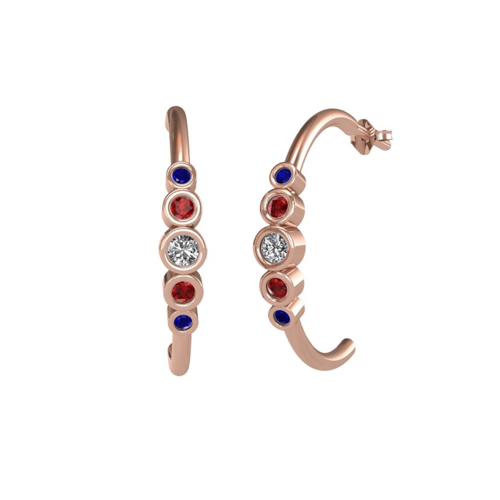 Beyaz zirkon, garnet ve lab safir 14 ayar rose altın küpe
