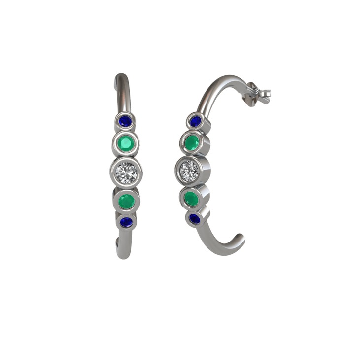Beyaz zirkon, kök zümrüt ve lab safir 8 ayar beyaz altın küpe