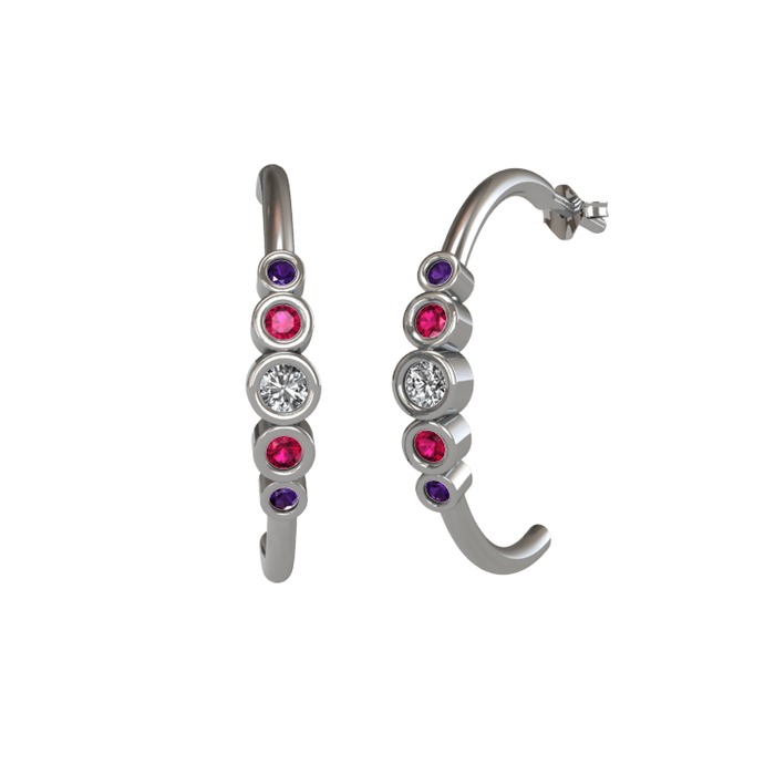 Beyaz zirkon, rodolit garnet ve ametist 8 ayar beyaz altın küpe