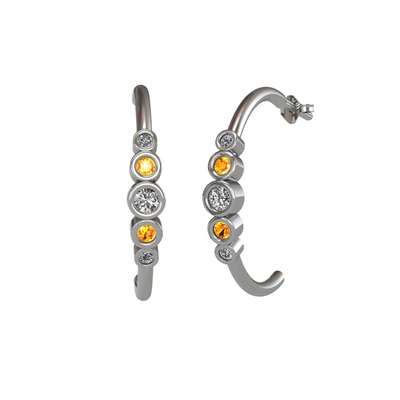 Beyaz zirkon, sitrin ve pırlanta 925 ayar gümüş küpe (0.08 karat)