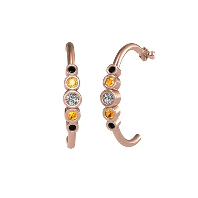 Beyaz zirkon, sitrin ve siyah zirkon 925 ayar rose altın kaplama gümüş küpe