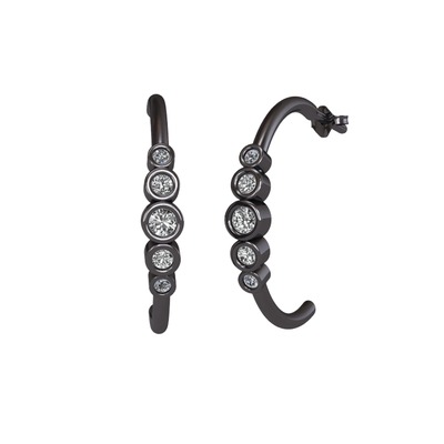 Beyaz zirkon, swarovski ve pırlanta 925 ayar siyah rodyum kaplama gümüş küpe (0.08 karat)