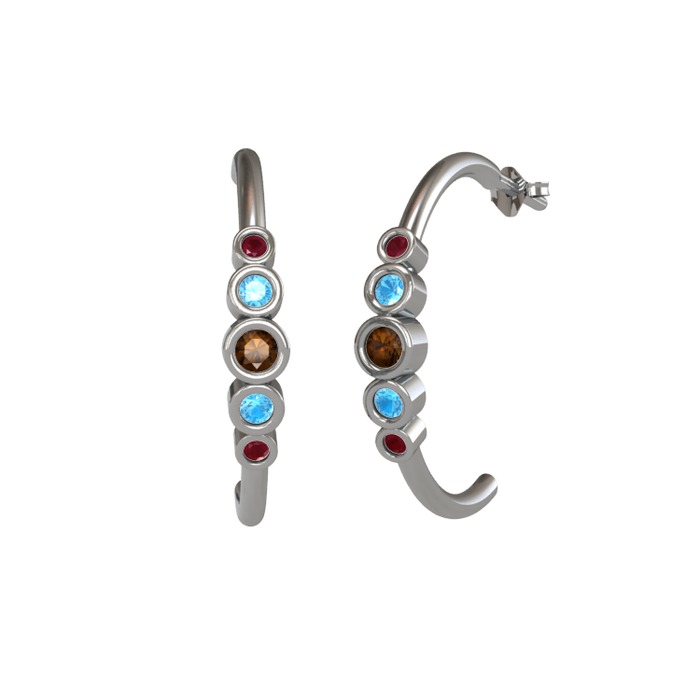 Dumanlı kuvars, akuamarin ve kök yakut 14 ayar beyaz altın küpe