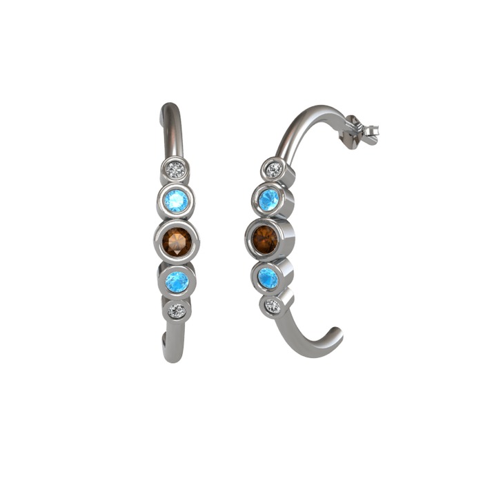 Dumanlı kuvars, akuamarin ve swarovski 14 ayar beyaz altın küpe