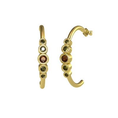 Dumanlı kuvars ve peridot 8 ayar altın küpe