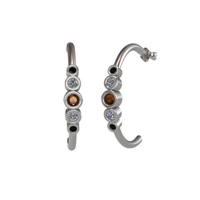 Dumanlı kuvars, pırlanta ve siyah zirkon 18 ayar beyaz altın küpe (0.08 karat)