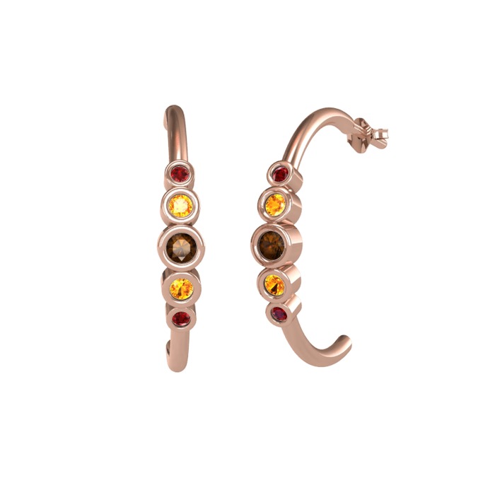 Dumanlı kuvars, sitrin ve garnet 925 ayar rose altın kaplama gümüş küpe