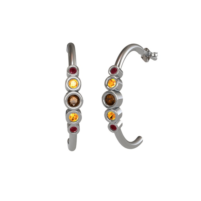 Dumanlı kuvars, sitrin ve kök yakut 925 ayar gümüş küpe