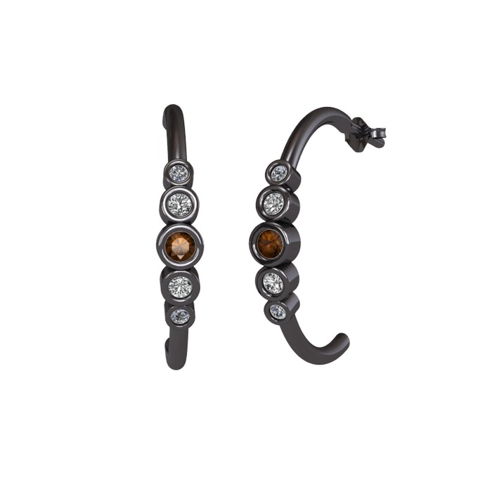 Dumanlı kuvars, swarovski ve pırlanta 925 ayar siyah rodyum kaplama gümüş küpe (0.08 karat)