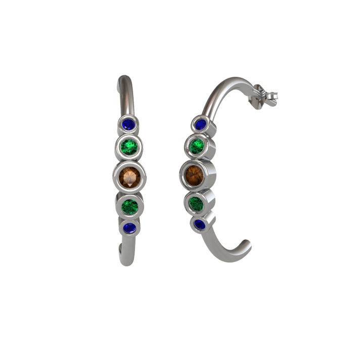 Dumanlı kuvars, yeşil kuvars ve lab safir 18 ayar beyaz altın küpe