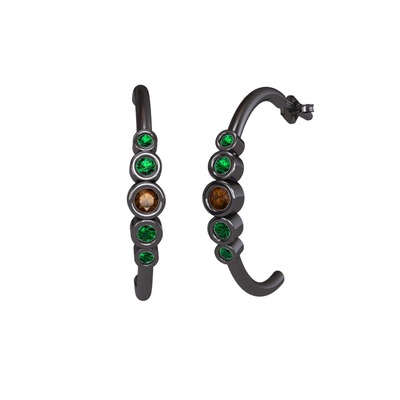 Dumanlı kuvars ve yeşil kuvars 925 ayar siyah rodyum kaplama gümüş küpe