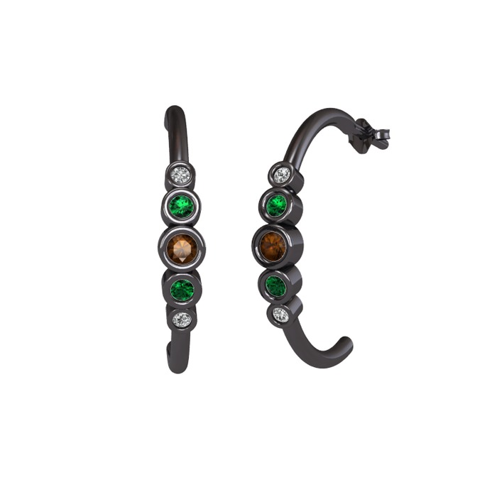 Dumanlı kuvars, yeşil kuvars ve swarovski 925 ayar siyah rodyum kaplama gümüş küpe