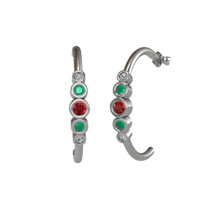 Garnet, kök zümrüt ve swarovski 18 ayar beyaz altın küpe