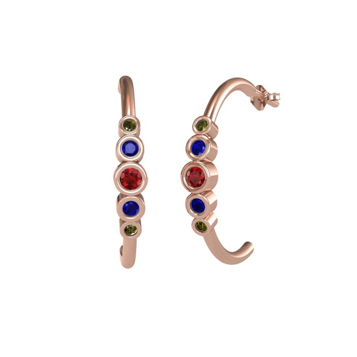 Garnet, lab safir ve peridot 18 ayar rose altın küpe