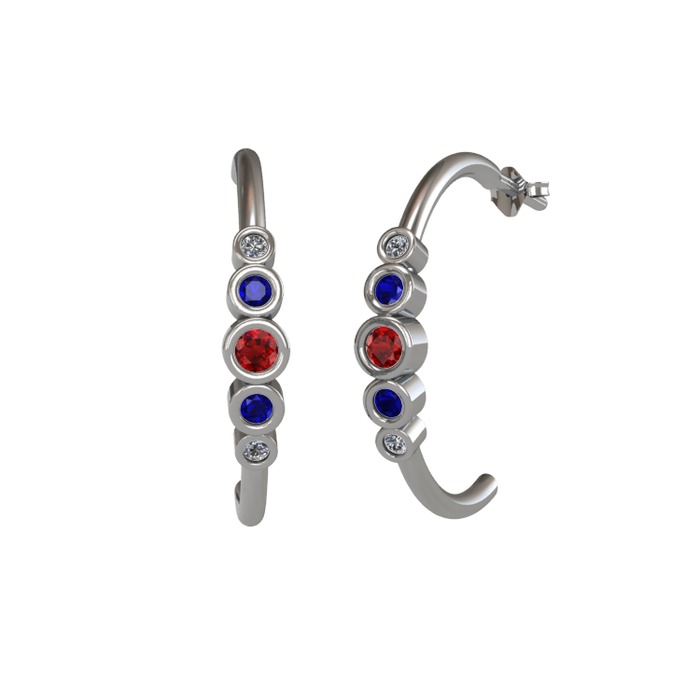 Garnet, lab safir ve pırlanta 14 ayar beyaz altın küpe (0.08 karat)
