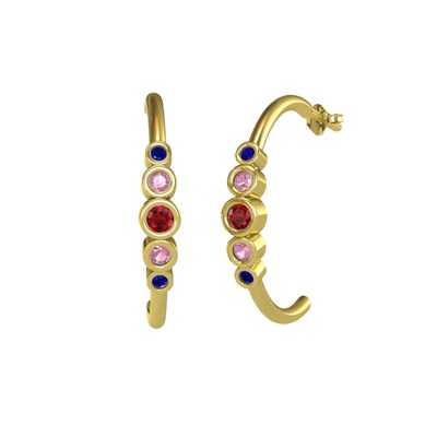 Garnet, pembe kuvars ve lab safir 925 ayar altın kaplama gümüş küpe