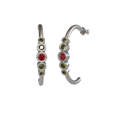 Garnet ve peridot 8 ayar beyaz altın küpe