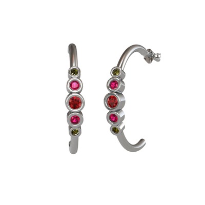 Garnet, rodolit garnet ve peridot 18 ayar beyaz altın küpe