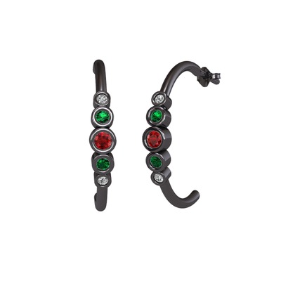 Garnet, yeşil kuvars ve beyaz zirkon 925 ayar siyah rodyum kaplama gümüş küpe