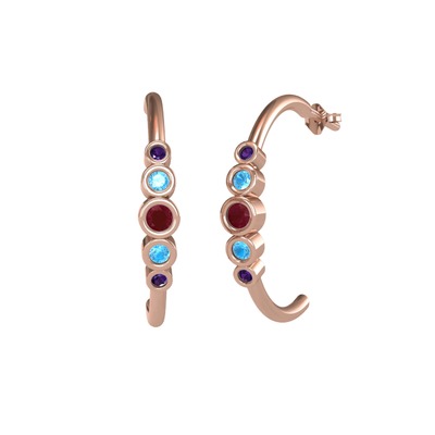Kök yakut, akuamarin ve ametist 925 ayar rose altın kaplama gümüş küpe