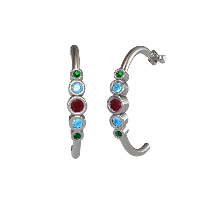 Kök yakut, akuamarin ve yeşil kuvars 925 ayar gümüş küpe