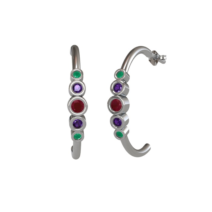 Kök yakut, ametist ve kök zümrüt 8 ayar beyaz altın küpe