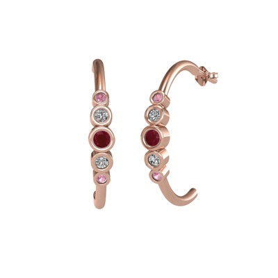 Kök yakut, beyaz zirkon ve pembe kuvars 8 ayar rose altın küpe