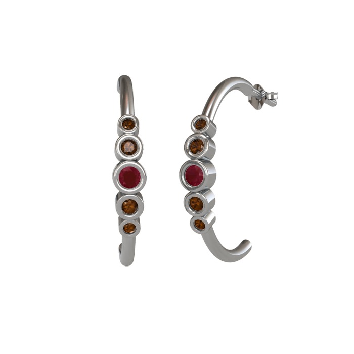 Kök yakut ve dumanlı kuvars 8 ayar beyaz altın küpe